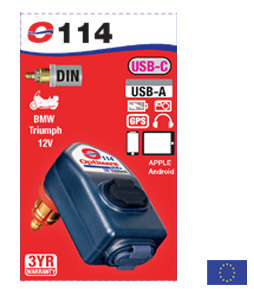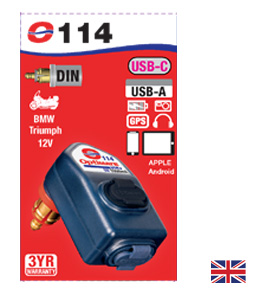 El cargador dual USB portátil de 3300mA con puerto USB-A y USB-C, con conector BIKE de codo de 90° que se adapta a tu motocicleta BMW y Triumph – ¡Carga tu teléfono, GPS, cámara o tablet!