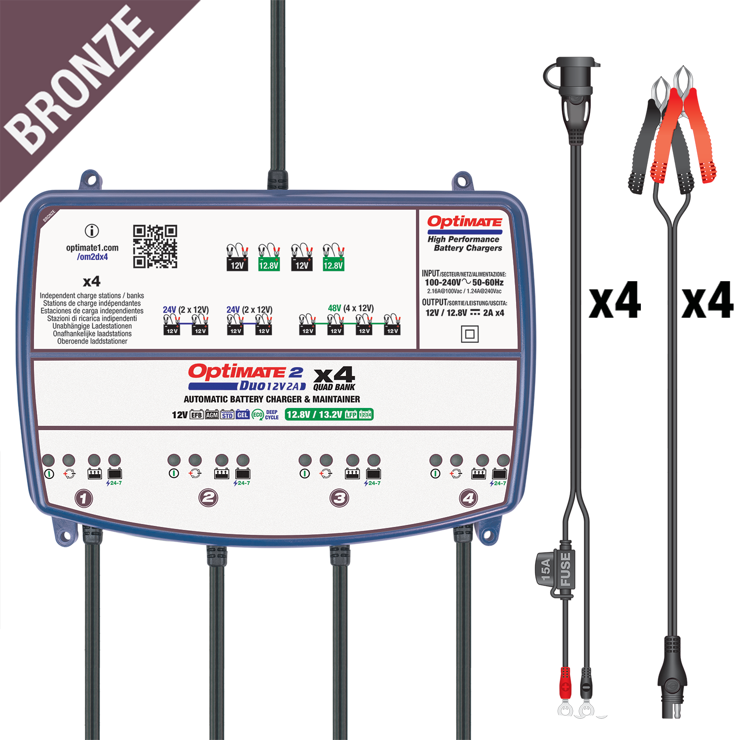 Serie BRONZE: cargador-mantenedor de batería sellada de 5 fases de 4x 12V/12,8V 2A
