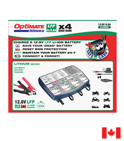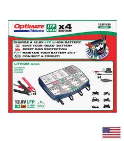 OptiMate Lithium 4s 0.8A quad bank es la elección ideal para hasta 4 x 12.8V/13.2V LifePO4 / LFP Lithium batteries. – La elección de los distribuidores / revendedores de baterías
