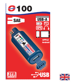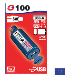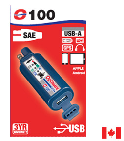 El cargador portátil y compacto de SAE a USB de 2400 mA para una carga segura y rápida de cualquier dispositivo USB, incluido su teléfono, cámara o GPS.