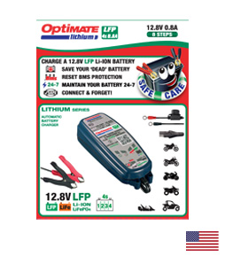 L'OptiMate Lithium 4s 0.8A peut être utilisé pour recharger votre batterie LiFePO4/LFP de 12.8V/13.2V.
