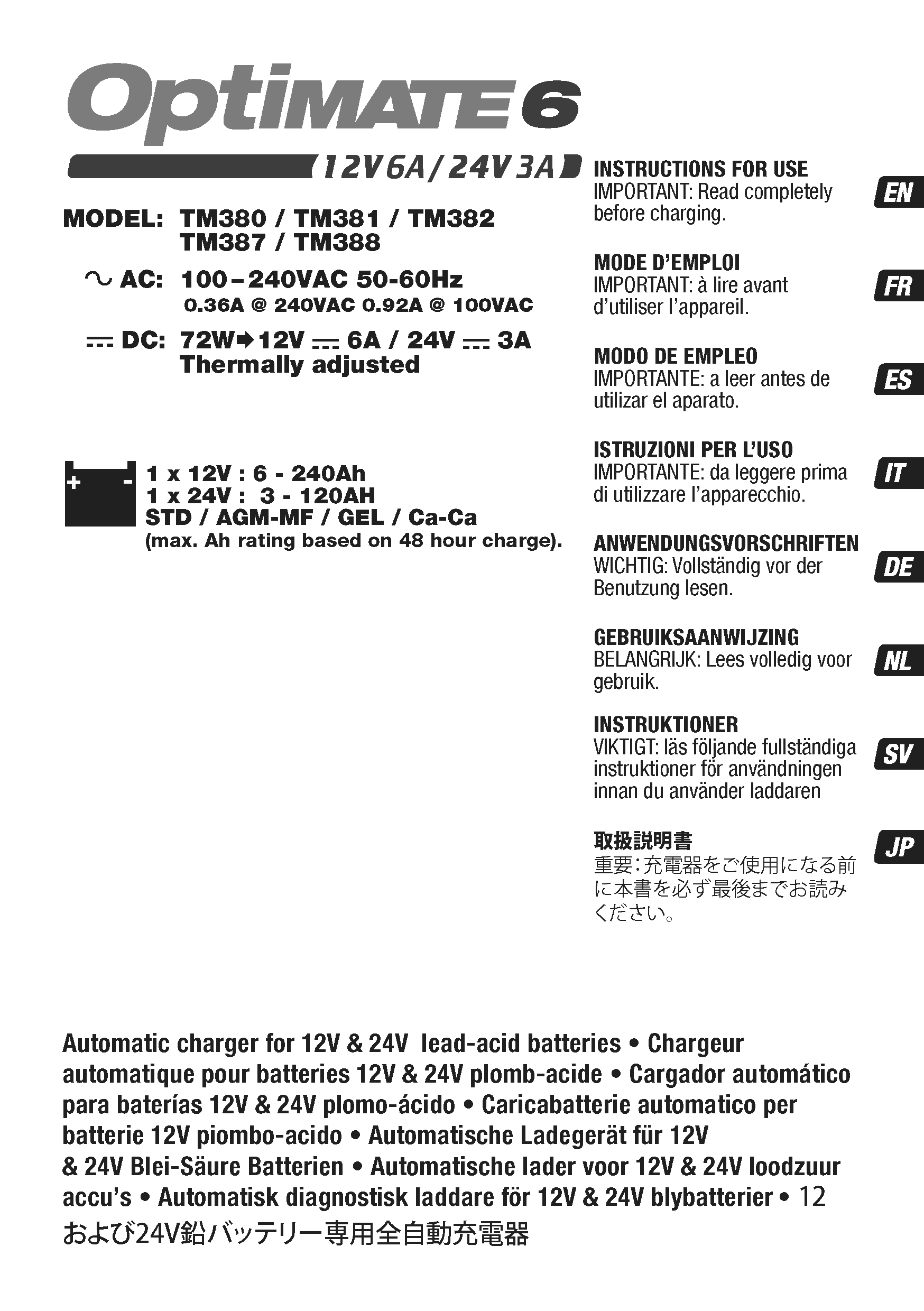 OptiMate 6 12/24V is de veelzijdige acculader voor 12V of 24V loodzuuraccu’s – het beste voor deep-cycle accu’s!