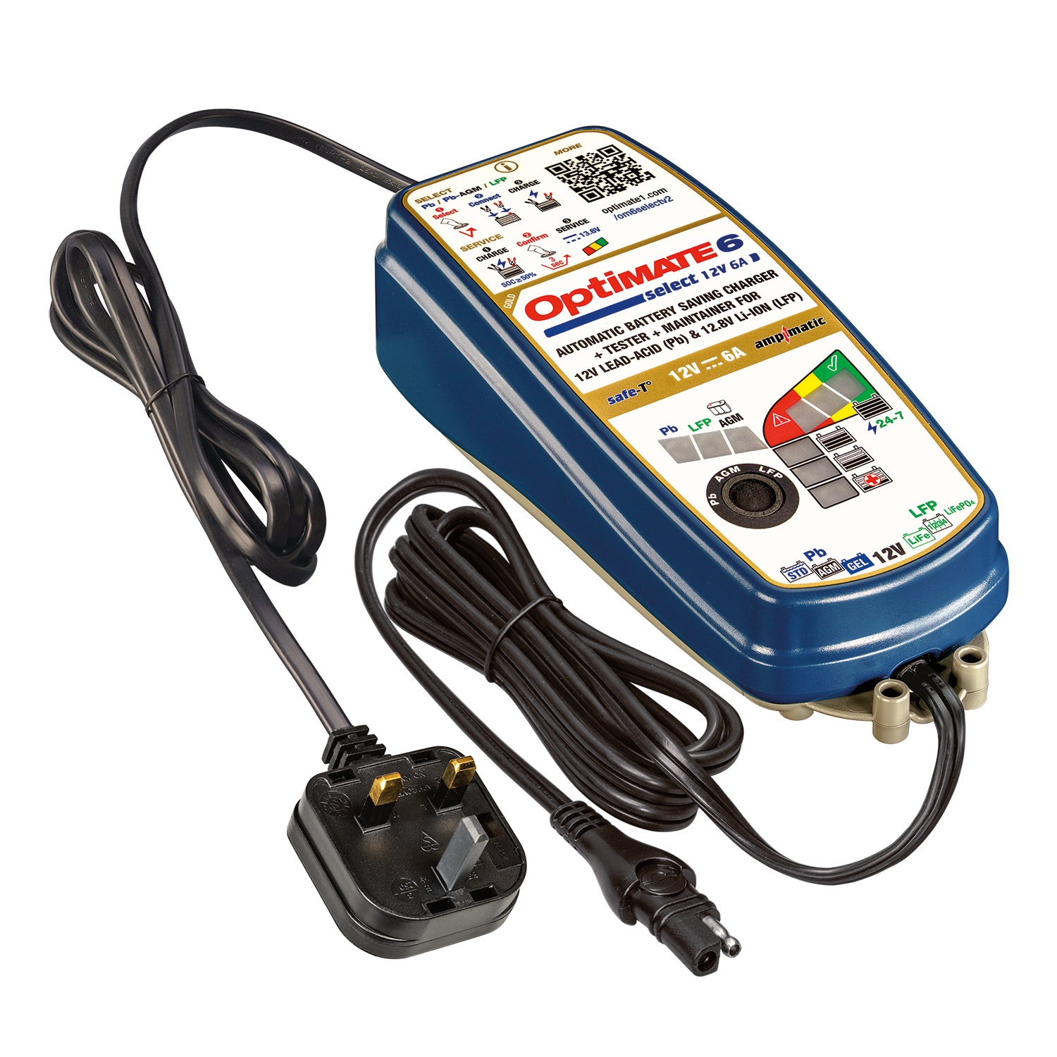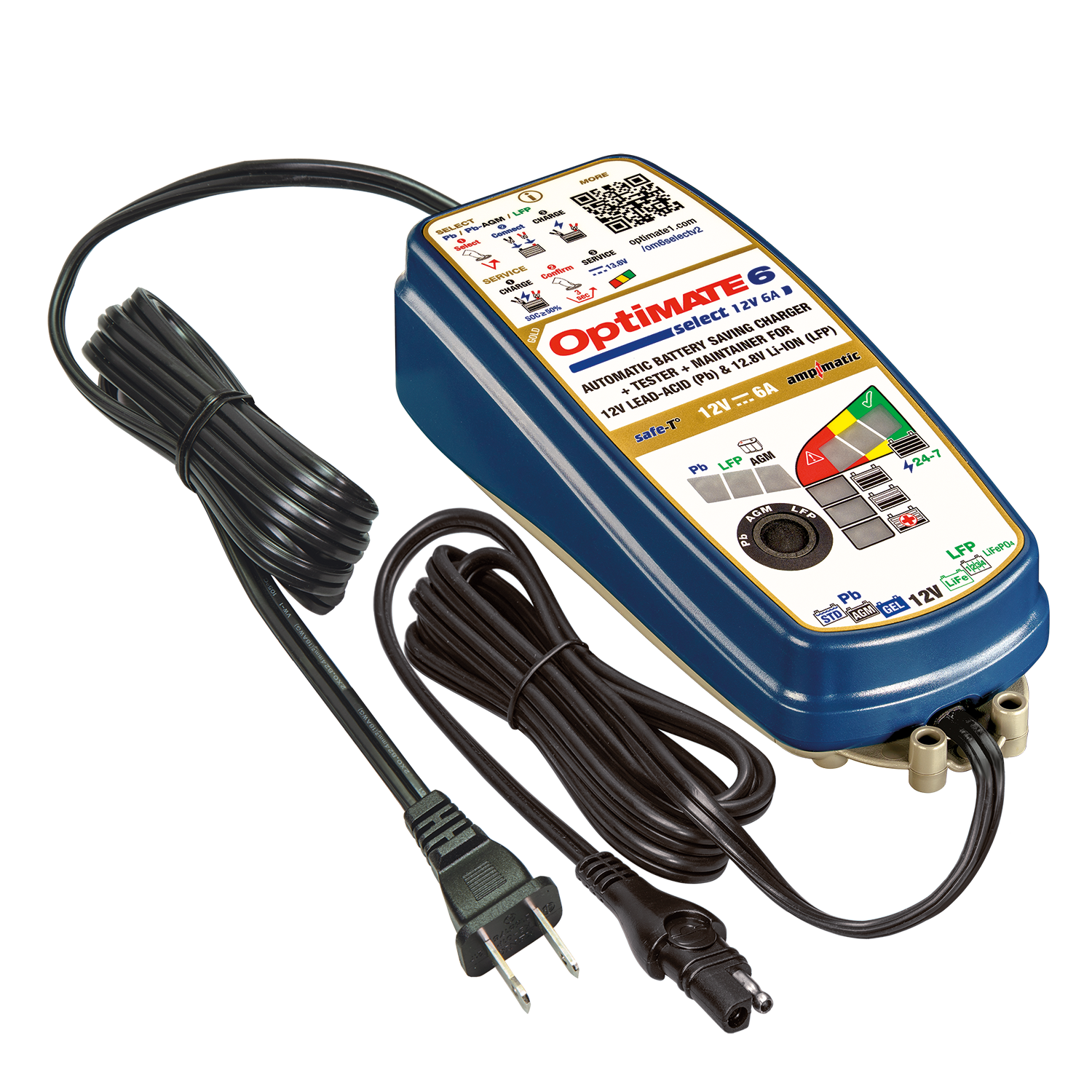 OptiMate 6 Select (version 2) is the ultimate 12V battery charger that can save, charge, test and maintain any type of 12V battery – Pb (lead-acid), AGM and lithium LFP.